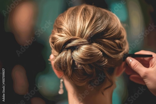 © Luxetify, Obraz premium A woman's hair is being styled in a bun.