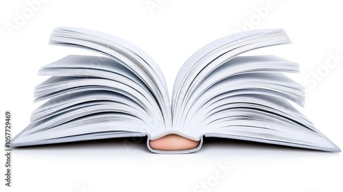 © Svitlana, Obraz premium A woman's hand gently cradles an open book, inviting curiosity and imagination against a soft white background