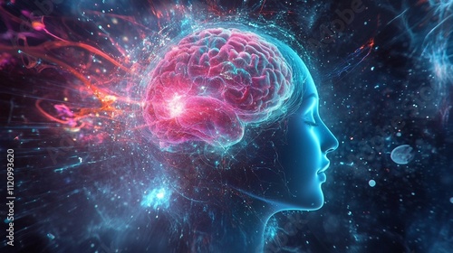 © muhammad, Fototapeta premium a woman's head with a brain exploding out of it