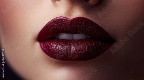 © liliyabatyrova, Fototapeta premium A woman's lips are painted with a bright red lipstick
