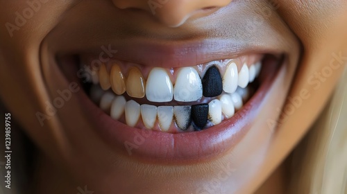 © Linus, Fototapeta premium A woman's teeth are black and white