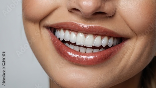 Fototapeta premium A woman showing her healthy teeth and smiling sweetly. Close up of woman's smile
