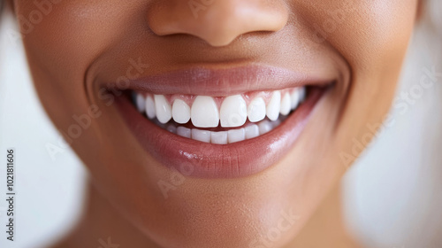 © ImageKing, Obraz premium A woman smiles happily after visiting her dentist for a checkup. Regular dental visits are important for keeping your smile healthy and bright.