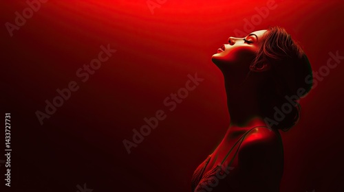 © MDRifat, Obraz premium A woman stands in profile against a dark background, illuminated by a soft red light.