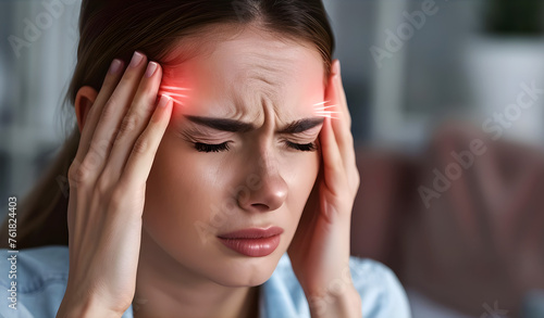 © Massimo Todaro, Fototapeta premium A woman suffers due to headache or migraine