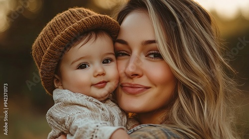 © Sang, Obraz premium A woman tenderly embraces and kisses a baby, showing profound affection.