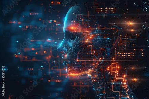 Fototapeta premium A woman undergoes facial recognition holographic imaging