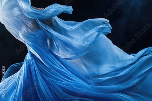 © Alla, Naklejka premium A woman wearing a blue dress dances in a dynamic pose