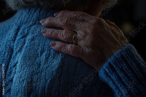 © Alexei, Fototapeta premium A woman wearing a blue sweater is gently holding another woman s shoulder