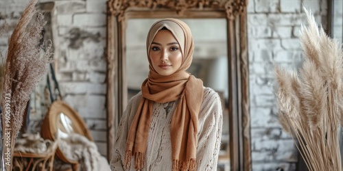 Naklejka premium A woman wearing a headscarf stands in front of a