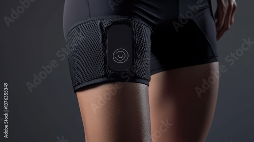 Fototapeta premium A woman wearing fitness technology strapped around her leg