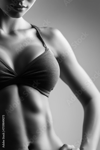 © Bonya Sharp Claw, Naklejka premium A woman with a black bra and a black shirt. The woman is posing for a photo