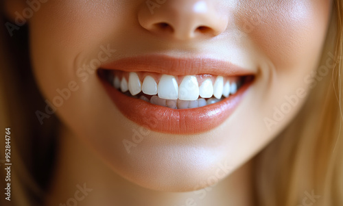 Fototapeta premium A woman with a bright smile showing her teeth. Concept of happiness and...
