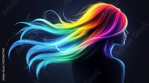 Obraz premium A woman with a multicolored rainbow-shaped hair against a black backdrop