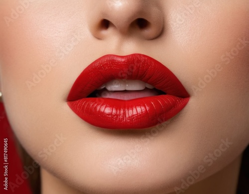 © zettar, Obraz premium A woman with a red lip is shown in a close up