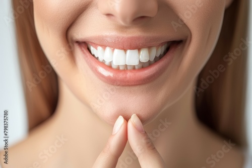 Obraz premium A woman with a white smile is shown with her teeth showing. Beautiful smile...