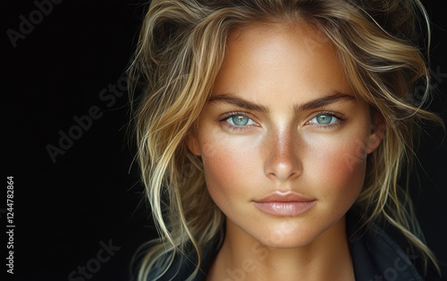 © hakule, Obraz premium A woman with brown hair and a green shirt