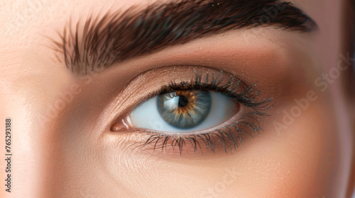 Obraz premium A woman with brown hair and brown eyes is wearing makeup