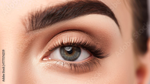 © Alina Tymofieieva, Obraz premium A woman with brown hair and brown eyes is wearing makeup