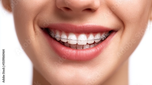 © Salander Studio, Obraz premium a woman with light braces smiling - close-up dental concept
