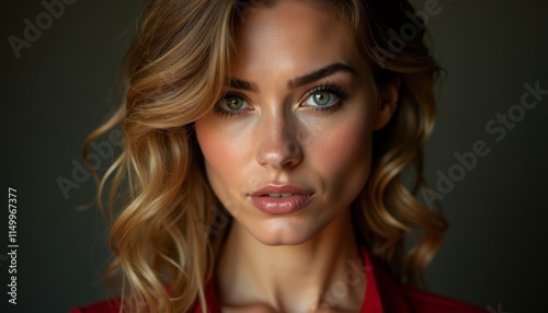 Fototapeta premium A woman with long blonde hair and blue eyes
