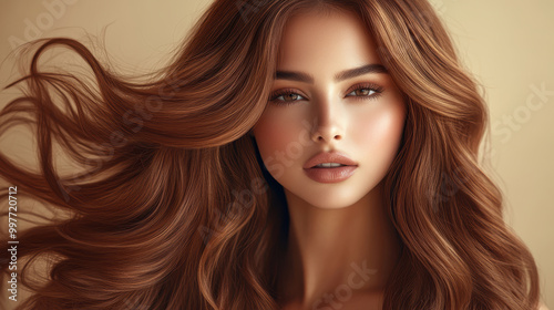 © easybanana, Fototapeta premium A woman with long brown hair and a nice smile. She has a nice face and is well groomed