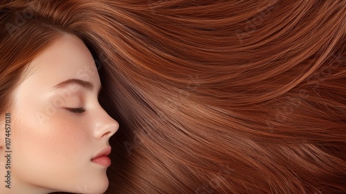 © Lifestyle Images, Obraz premium A woman with long brown hair is sleeping