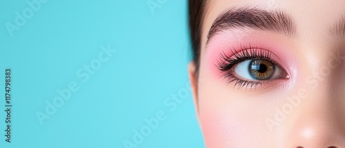 Fototapeta premium A woman with pink eye shadow and long eyelashes