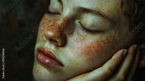 Fototapeta premium A woman with red hair and freckles is sleeping