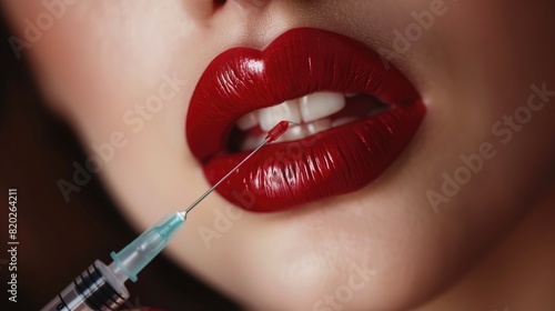 Obraz premium A woman with red lips getting a botox injection during a cosmetic procedure