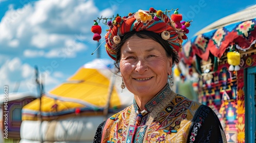 Obraz premium A Womans Smile Under the Mongolian Sky