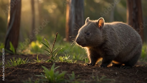 Obraz premium A wombat in a sunlit forest setting, showcasing its natural habitat and...
