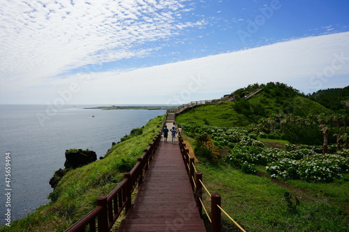 © SooHyun, Obraz premium a wonderful boardwalk at a seaside cliff