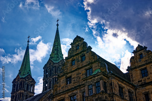 © Oleksii Pyrogov, Fototapeta premium A wonderful day in the city of Bamberg in rainy weather.