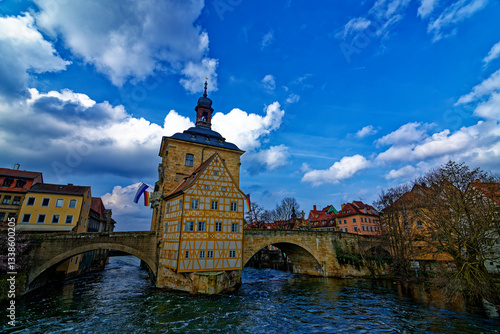 Naklejka premium A wonderful day in the city of Bamberg in rainy weather.