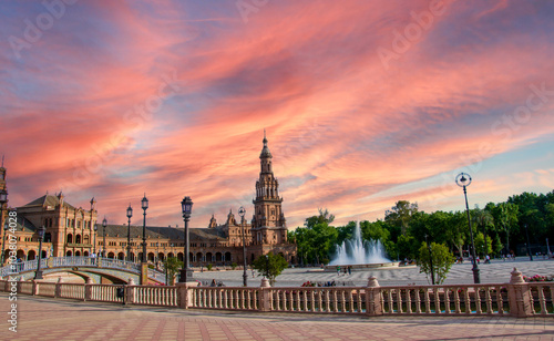 Naklejka premium a wonderful evening in Plaza de España in Seville Spain