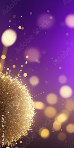 Obraz premium A wonderfully elegant festive design with a rich purple background decorated with gold elements in purple and gold dark colours, sparkling lights and bokeh effects scattered throughout the image