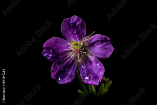 © Stan Weyler, Fototapeta premium A wood cranesbill flower with raindrops during a summer shower