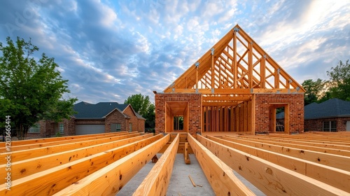 © Koh's Smart, Fototapeta premium A wood roof truss is a structural framework of timbers designed to support the roof of a building