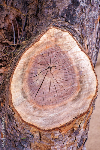 Naklejka premium A wood stump pattern with growth rings, hardwood, ironwood timber.