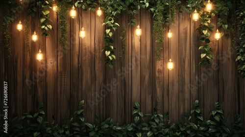 Fototapeta premium a wood wall adorned with warm bulb lights, creating a cozy and inviting...