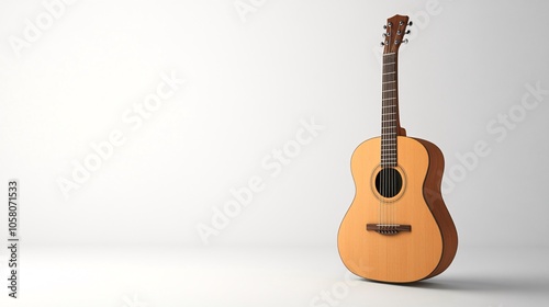 © mifta, Naklejka premium A wooden acoustic guitar on a white background, with copy space. Generative ai
