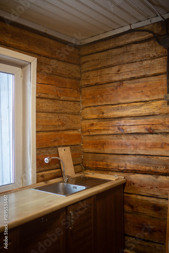 © velimir, Obraz premium a wooden beam wall in the kitchen