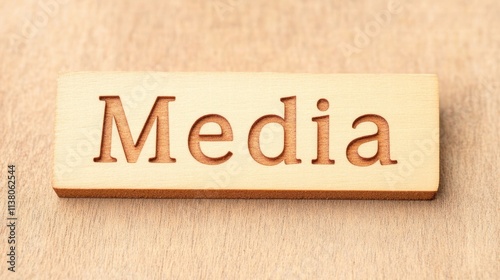 Obraz premium A wooden block engraved with the word Media, symbolizing communication,...