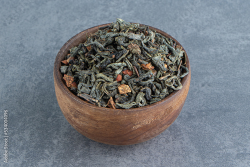 © rastockinc, Fototapeta premium A wooden bowl of dried tea leaves