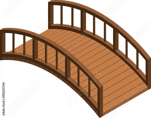 © MicroOne, Obraz premium A wooden bridge with a curved design