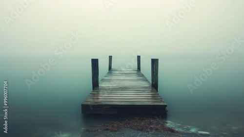 © Rere_Art151, Obraz premium A Wooden Dock Extending into a Foggy Lake