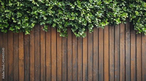 © sambath, Fototapeta premium A wooden fence with green ivy growing on it.