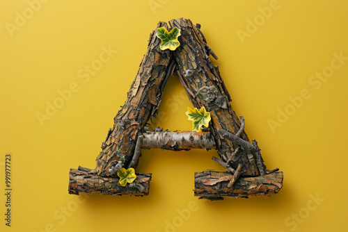 © Babb, Fototapeta premium A wooden letter A is displayed on a yellow background