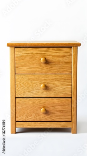 © Obee, Fototapeta premium 81. A wooden nightstand with natural wood grain and storage drawers, isolated on white